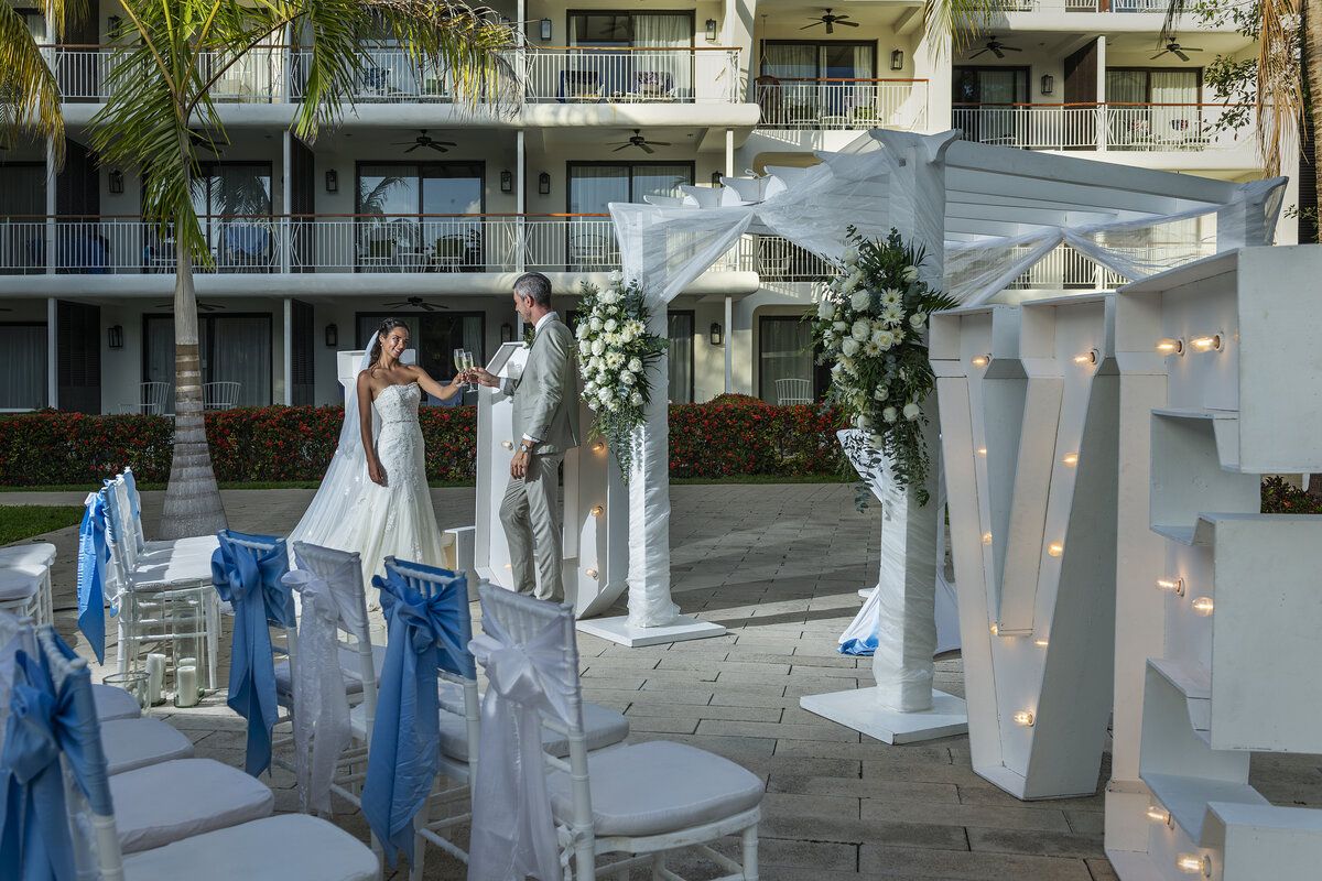 Diseñado para celebraciones sencillas pero memorables, este paquete te permite compartir tu boda con hasta 10 invitados. Incluye una ceremonia con decoración básica, un brindis, tarta y cena en uno de los restaurantes del resort. Además, es gratis cuando se cumplen ciertas condiciones de estancia, lo que la convierte en una opción muy asequible.