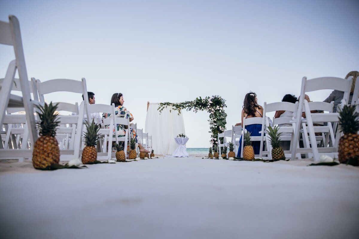Wedding package with a sustainable and elegant focus. Includes ceremony, cocktail hour, and private dinner, with personalized services and decoration in either Natural or White style, featuring tropical flowers. Designed to deliver luxury with eco-consciousness, this package blends expertise, quality, and environmental commitment.