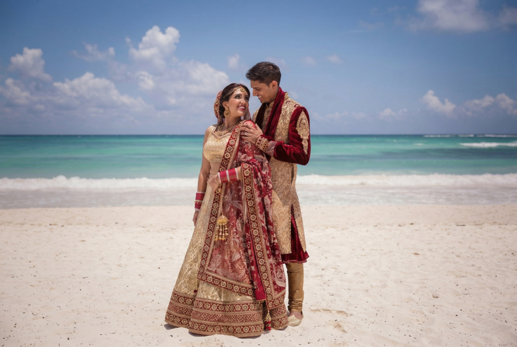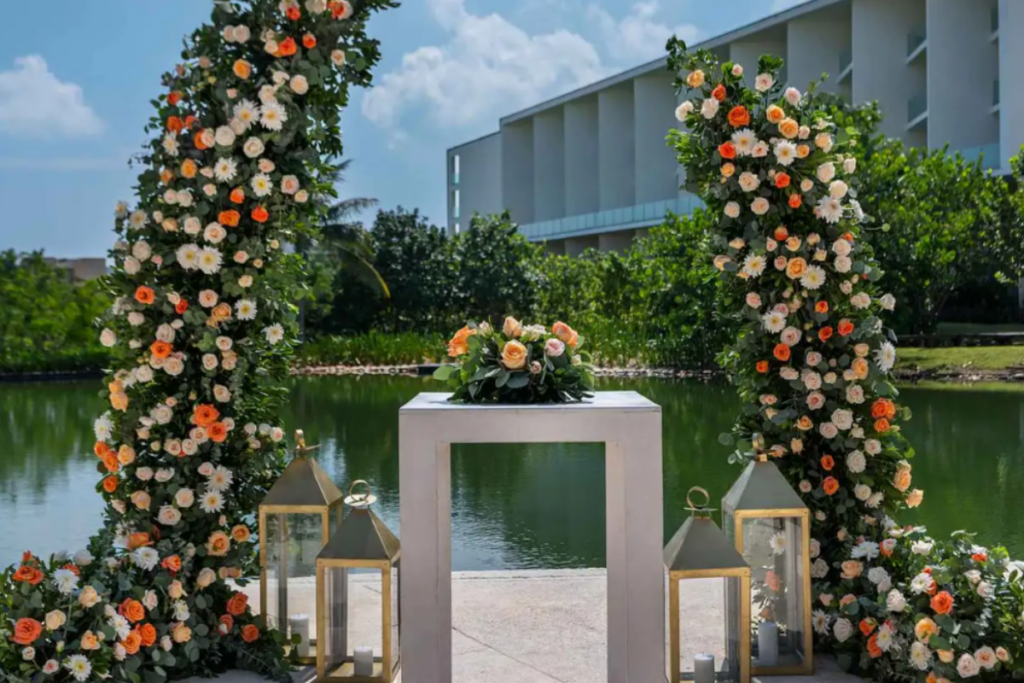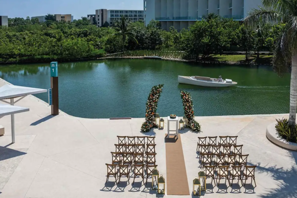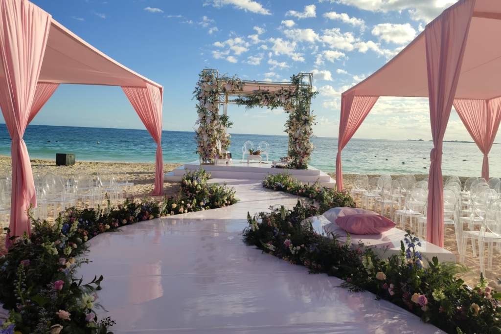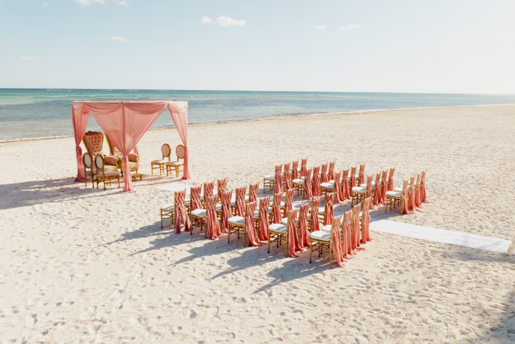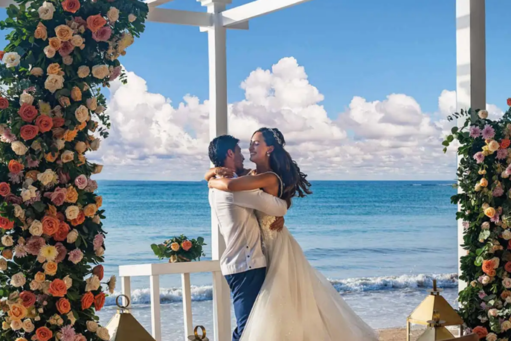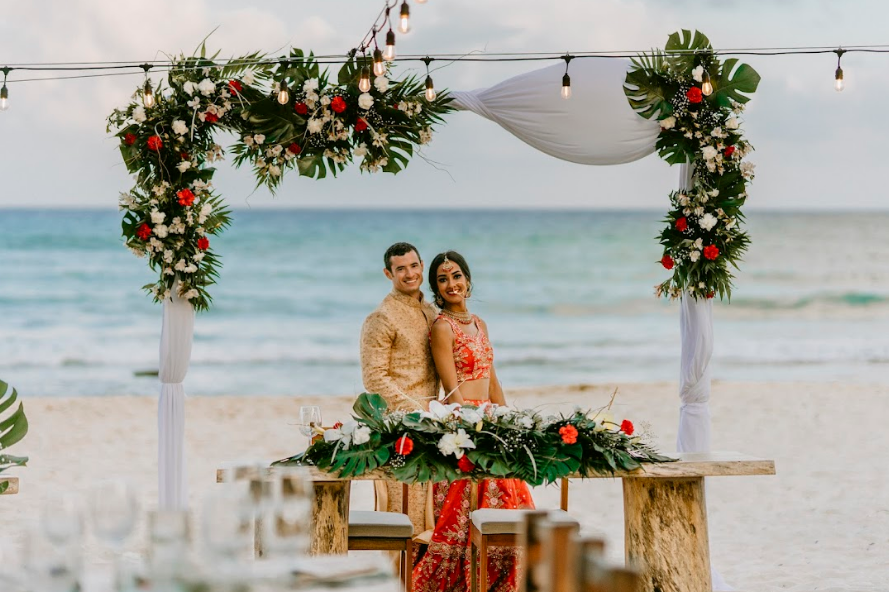 Exclusive beachfront venue with customizable floral arrangements and post-wedding benefits (for the honeymoon). Unlimited guests.
