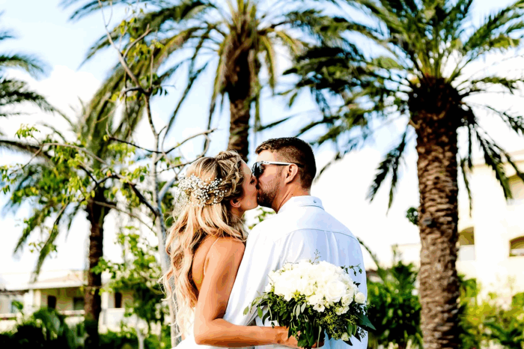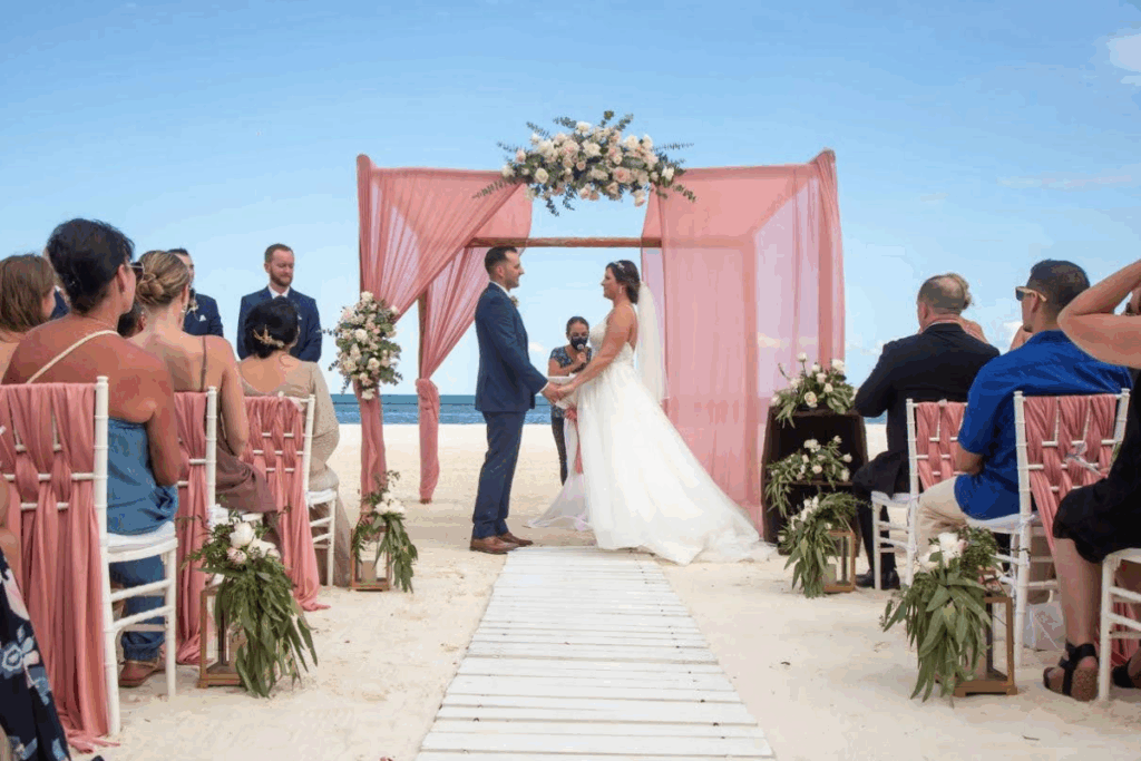 With a resort wedding, you typically choose a wedding package that includes many of the key elements: ceremony décor, bouquet and boutonnière, cake, basic audio, sometimes private cocktail and reception, plus perks like spa discounts or room upgrades.